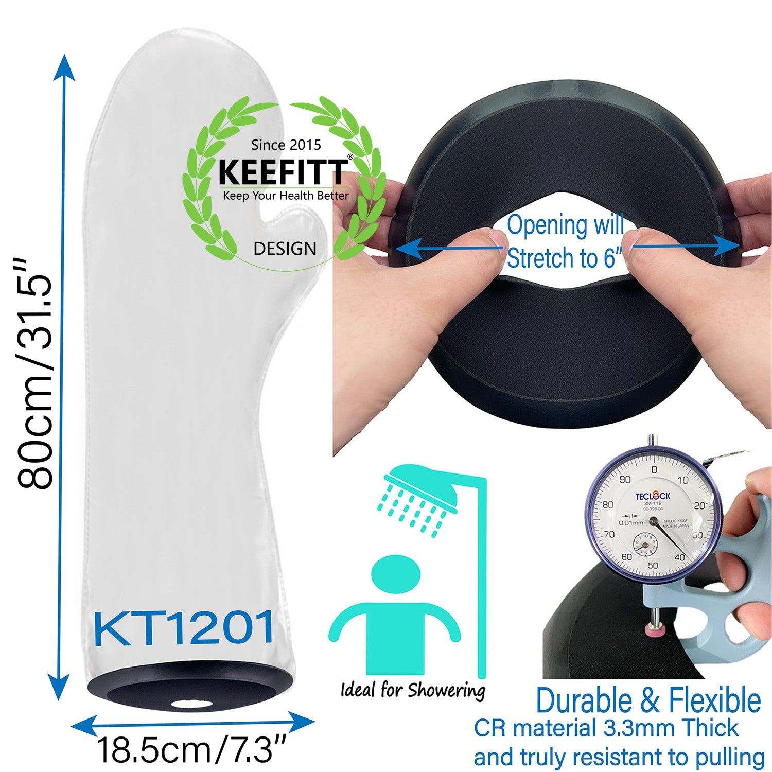 This waterproof product covers your entire Knee and has a baggy and flexible design that fits over any cast & wound.